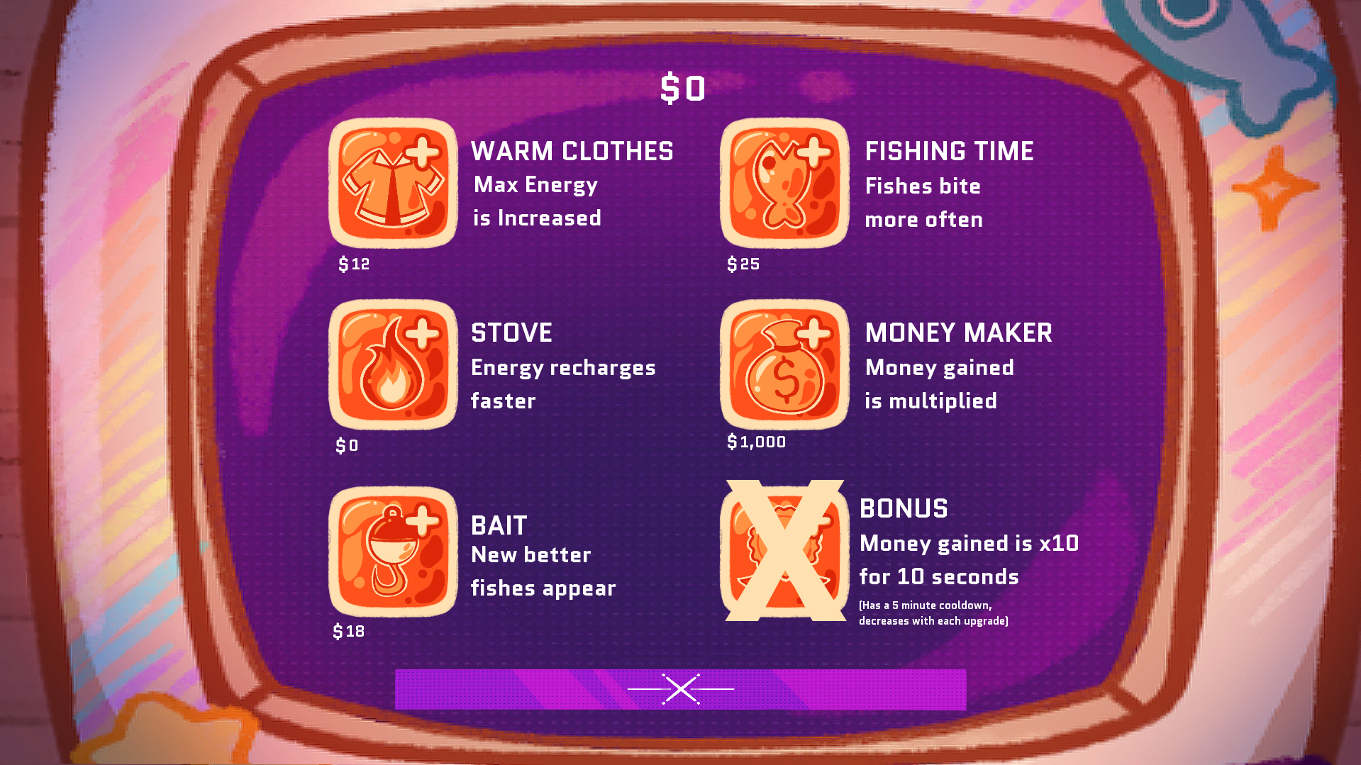 From the moment I booted up this game, I was taken away by the art style and the overall vibes of the game. This is such a wonderful experience. A very chill, lofi incremental experience that I know I'll be playing a lot, with a unique fishing minigame to boot! Good job!
